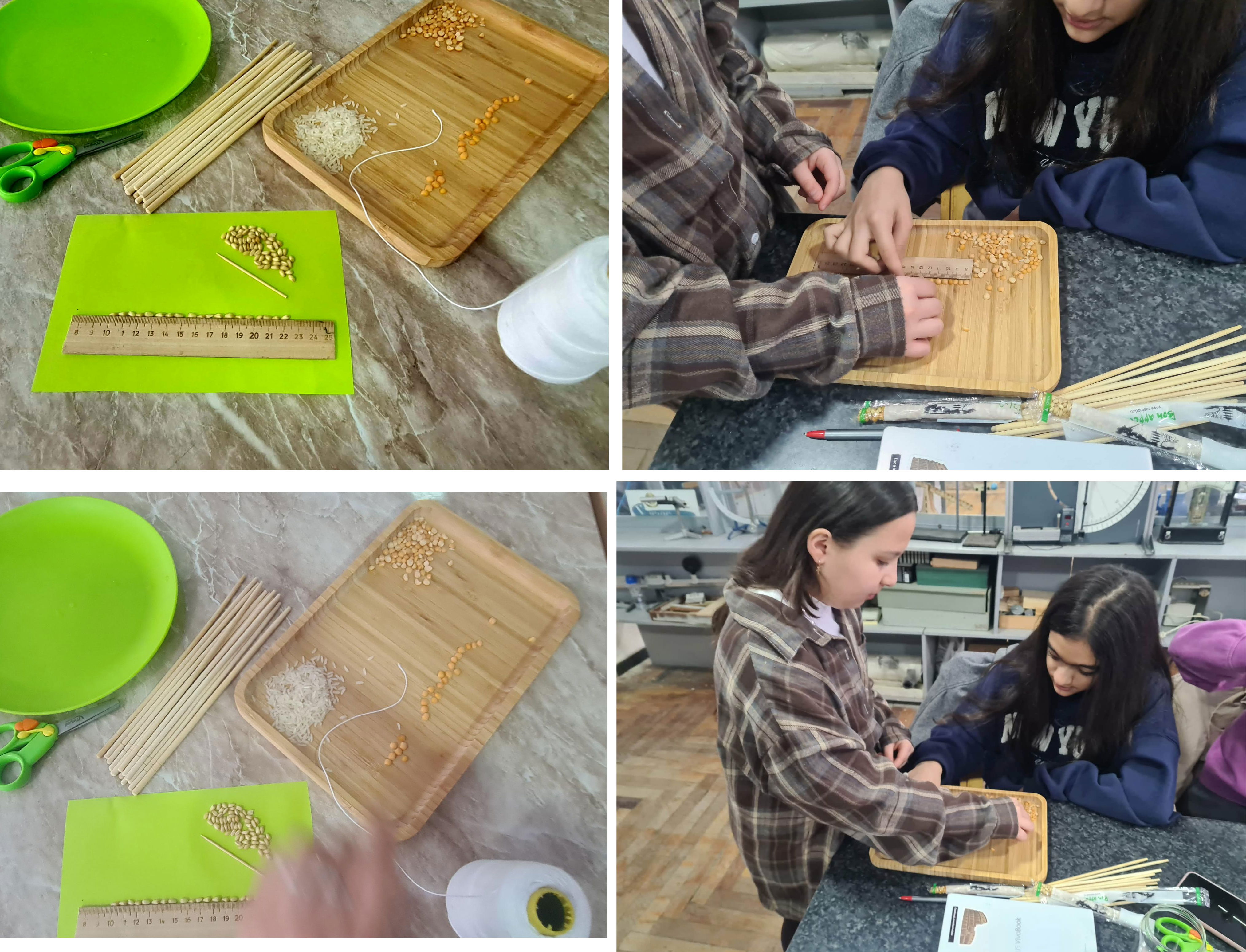 Նպատակը․ Ուսումնասիրել փոքր չափեր ունեցող մարմինների (ցորենի հատիկ, բրինձ, լոբի, ձավար, ուլունքներ, գրքի թերթ, մետաղալարի տրամագիծ և այլն) չափերը՝ կիրառելով շարքերի մեթոդը, առաջարկիր այլ մեթոդներ։